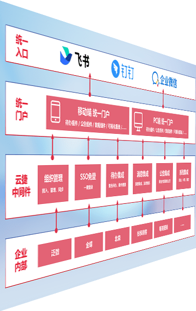 对协作平台提供支持服务,,,支持企业应用与协作平台对接,,,包含组织同步、、、消息集成、、待办集成等。。。。支持目前主流的协作平台:钉钉、、企微和飞书。。。
